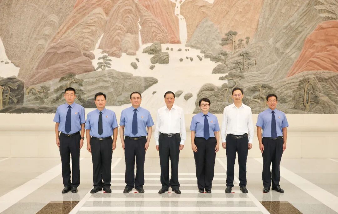座谈会前,最高人民检察院党组书记、检察长应勇与5位最高检选派的新一批援藏援青干部合影。