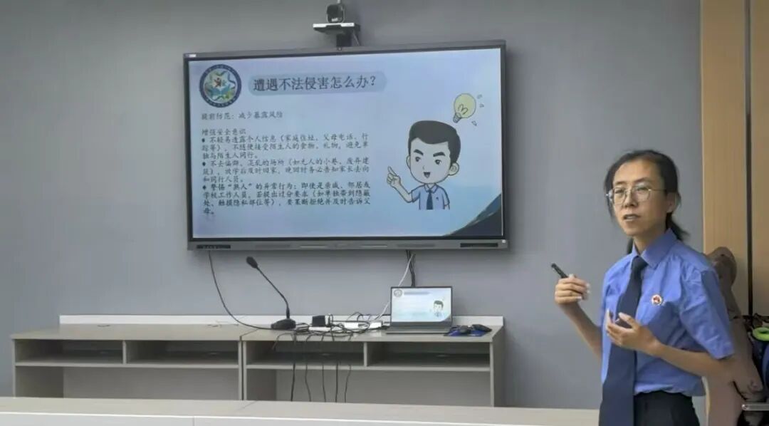 活动中,检察干警以生活中的点滴小事为切入口,引导未成年人从小树立法治意识,做遵纪守法的公民,在发生不法侵害时学会用法律的武器维护自己的合法权益。